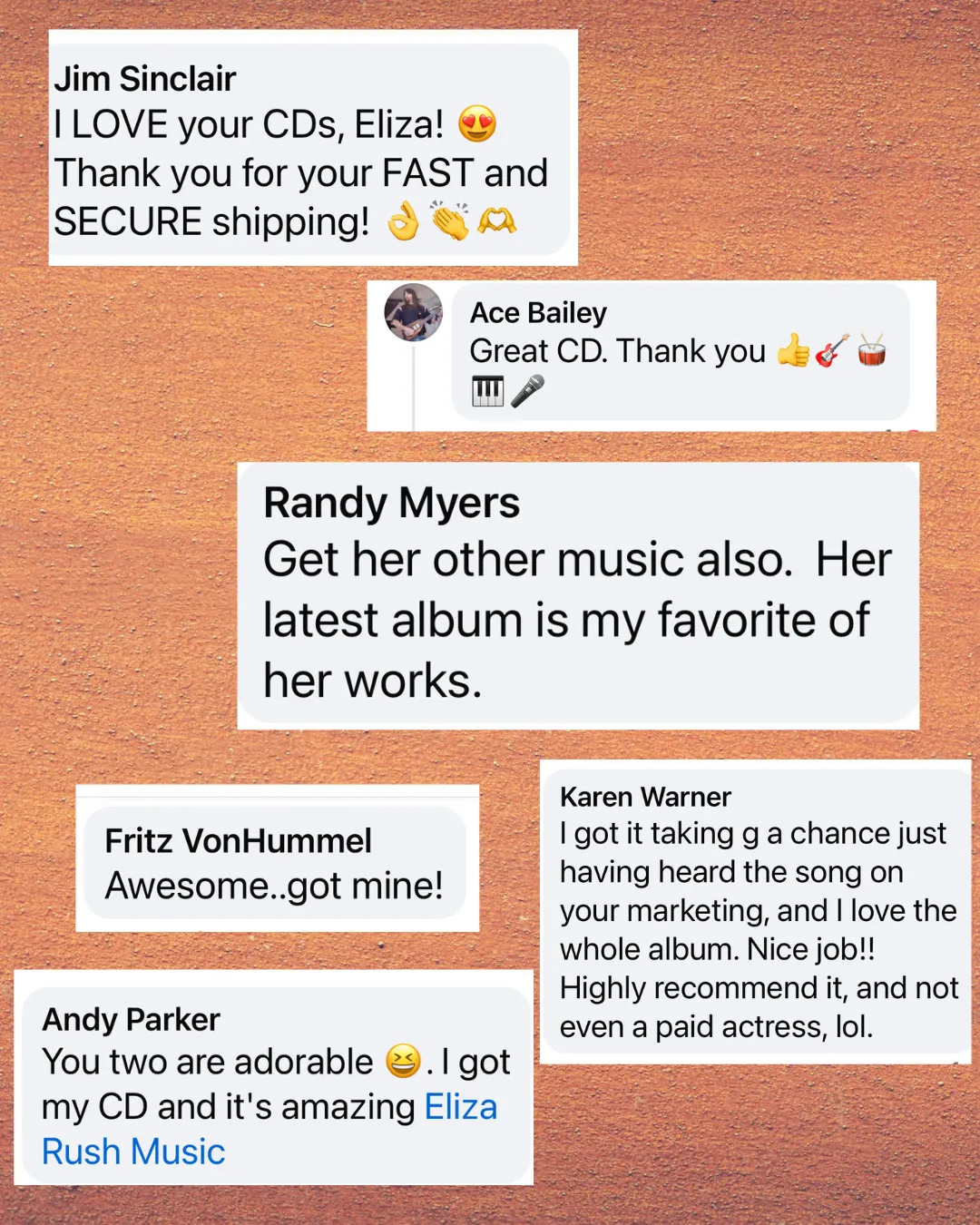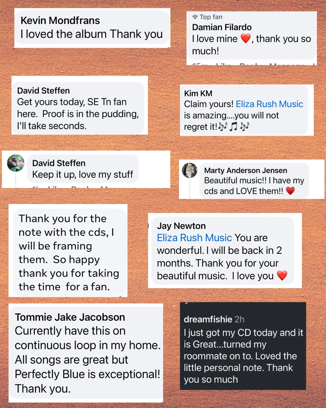 "Eliza Rush’s All That Remains is a masterclass in heartfelt, no-BS songwriting. Every track feels intentional, with lush harmonies, thoughtful instrumentation, and melodies that linger long after the music stops. There’s a beautiful balance of organic, folk-inspired storytelling and a subtle pop sensibility that makes the songs instantly memorable. The production is warm and dynamic, letting Eliza’s evocative voice take center stage—sometimes soaring, sometimes delicate, but always deeply expressive. Her music in general has a way of cutting through the noise, drawing you in with its honesty and emotional depth. All That Remains is no exception—it’s the kind of album that doesn’t just play in the background, it stays with you."